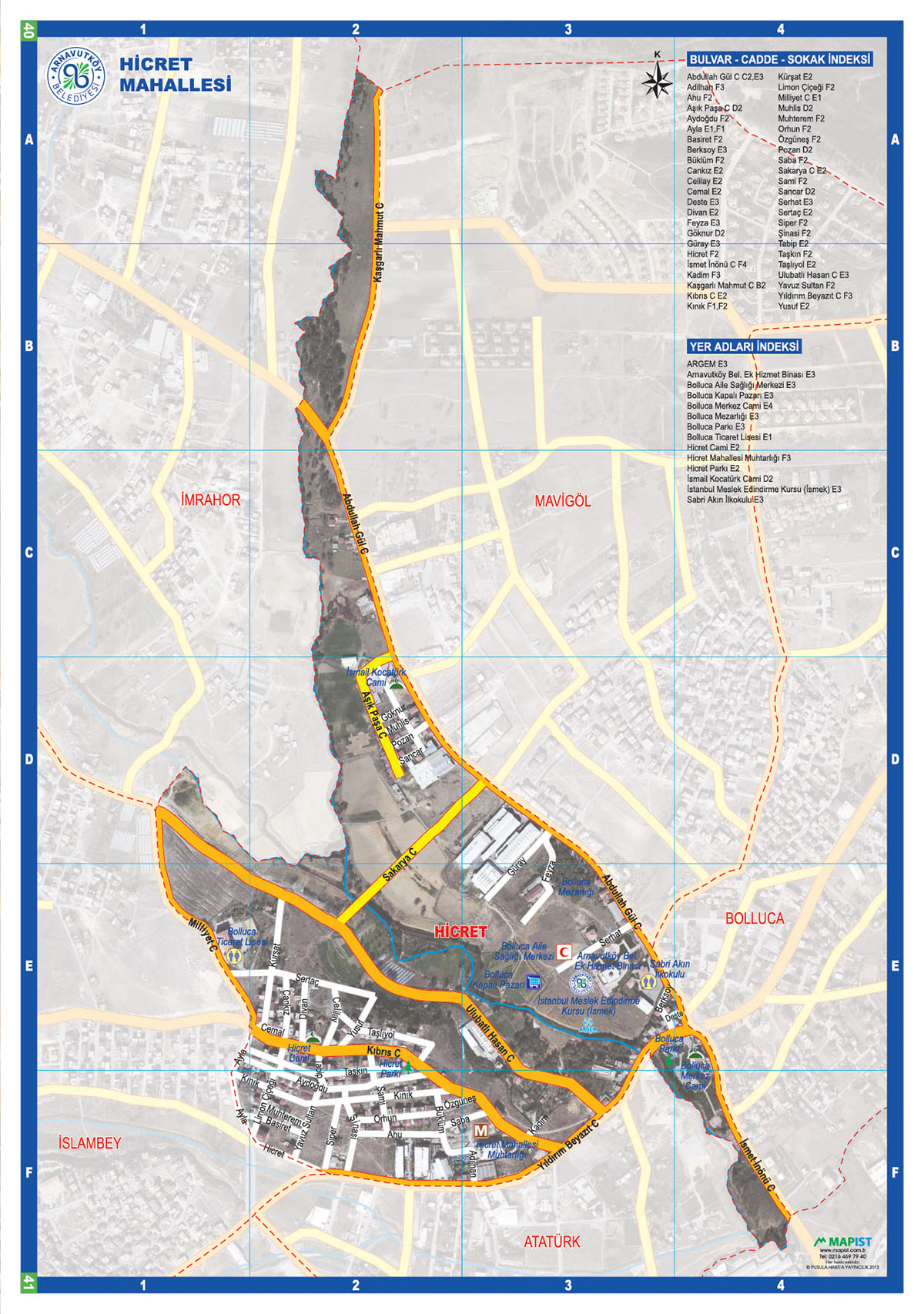 Hicret Mahalle Muhtarlığı (Muhtar: Ali GÖNDÜK) Adres: Hicret Mah. Kıbrıs Cad. No: 362/1 Tel: 0212 685 24 34